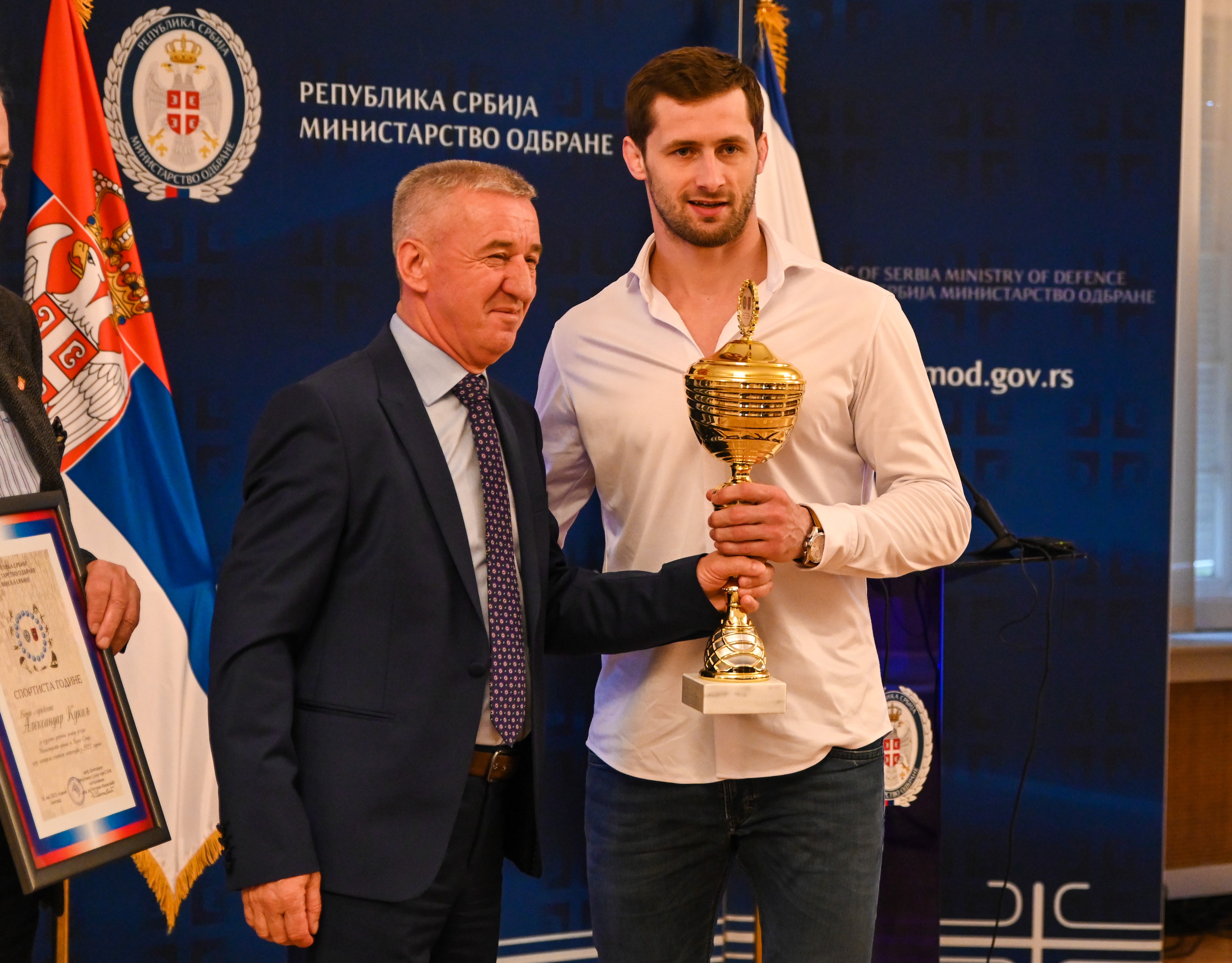 -Čast mi je što predstavljam Ministarstvo odbrane u svojim sportskim nastupima i što u skladu sa svojim mogućnostima doprinosim afirmaciji i jačanju ugleda srpskih oružanih snaga kako u Srbiji tako i u inostranstvu. Ponosan sam i zahvalan na priznanju za sportistu godine Ministarstva odbrane, što će mi biti dodatni vetar u ledja da dalje nastavim jos jače- istakao je Aleksandar Kukolj, srpski trofejni reprezentativac.