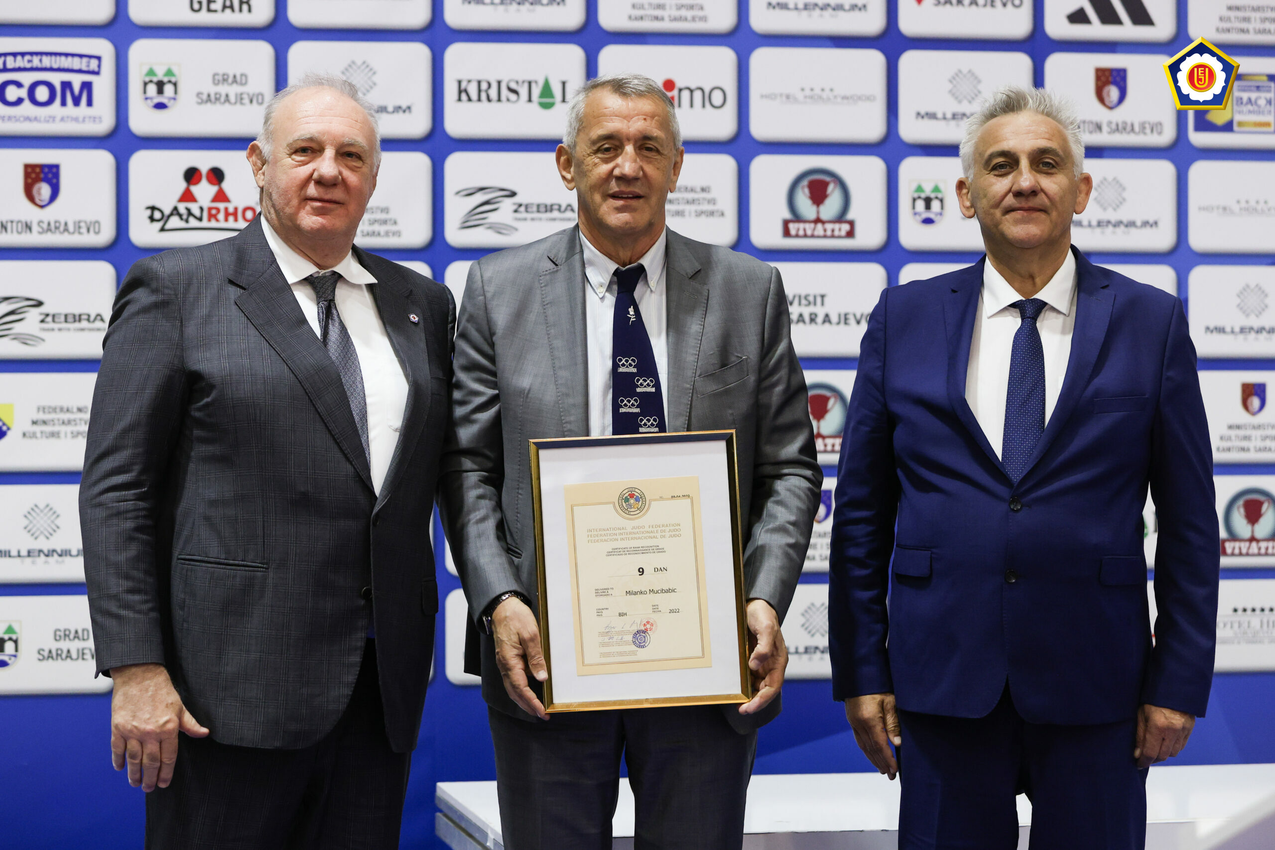 Na svečanoj ceremoniji uručena su priznanja Ognjenu Pavloviću predsednika Džudo saveza BiH za odličnu organizaciju, Branislavu Crnogorcu, direktoru za razvoj EDŽU kao olimpijskom treneru, Larisi Cerić i Aleksandri Samardžić za vrhunske sportske rezultate, dok je dr Milanku Mučibabiću uručen 9 DAN od strane Međunarodne džudo unije IJF.
